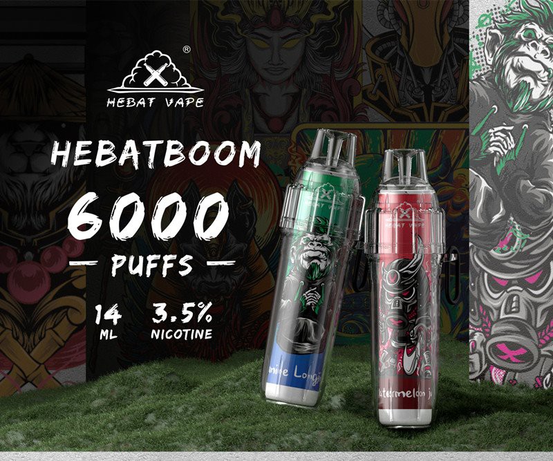 Hebat Boom 6000 on kertakäyttöinen ja ladattava sähkösavuke. Erittäin kustannustehokas tuote jopa 10 makua: Tieguanyin, Iced Cola, Rypälejää, Litsi, Mustikka, Passionhedelmä, Minttu, Mansikka, Rehevä jää, Energiajuoma.